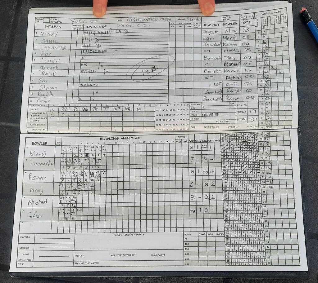 Scorecard: https://cricclubs.com/YorkCricketClubYCC/viewScorecard.do?matchId=987&clubId=1001384