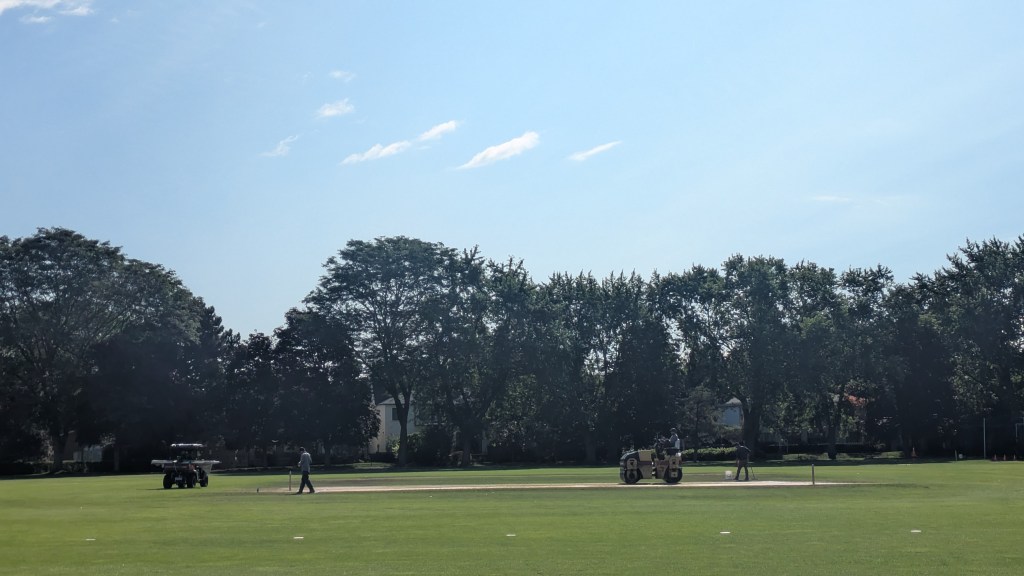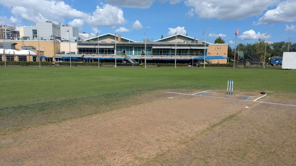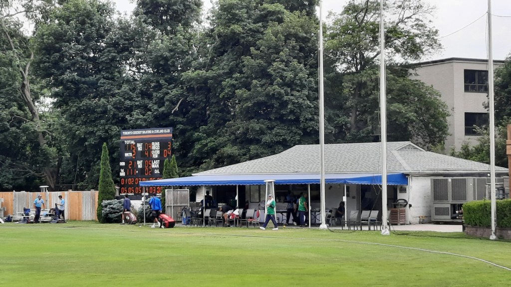 Toronto Cricket, Skating and Curling Club invited the NCC back on the most glorious of summer’s day. After a brief pitch issue the toss was won by TCSCC who decided to have a bat. NCC’s captain, returning from a brief jaunt in the Arctic to reclaim his position of disrespected leader of the group, seemed happy to have lost the toss and was overhead as saying: “It was a good toss to lose” and “Bazball never bats first anyway”.